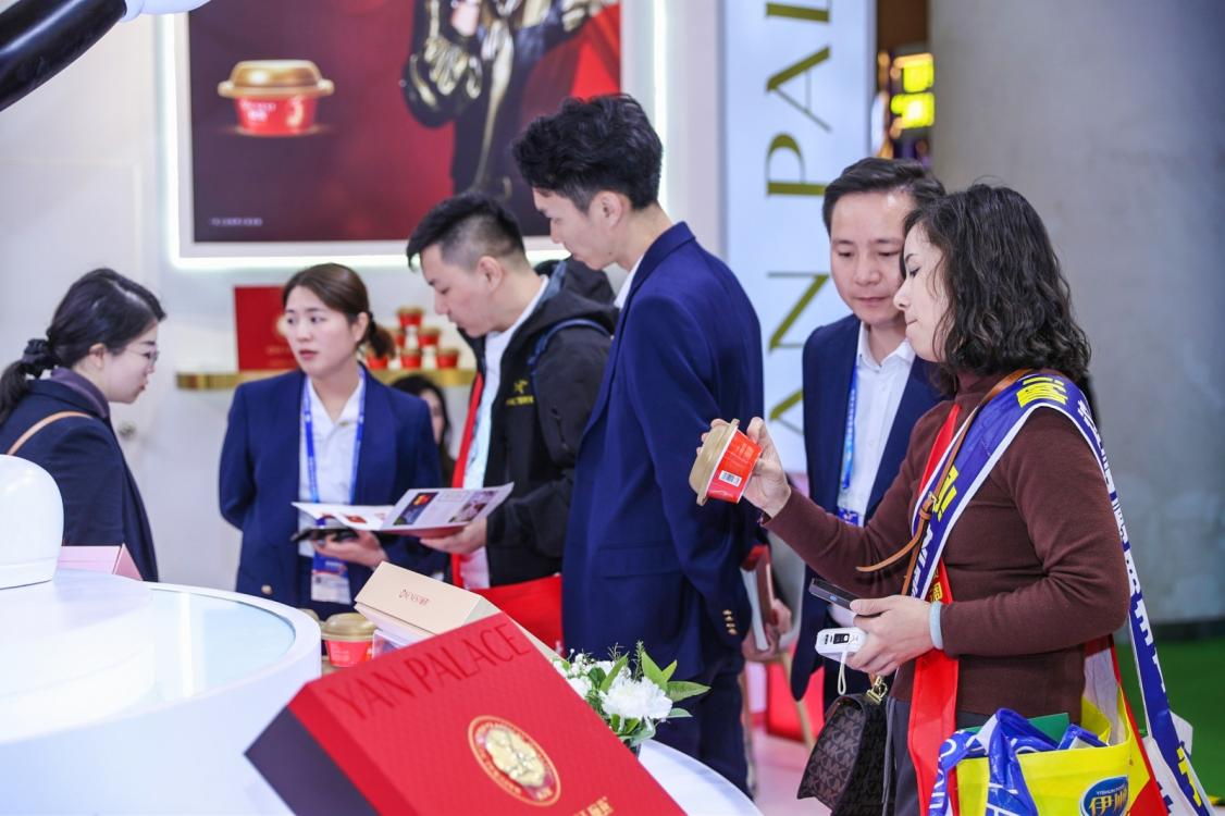 憑借高品質(zhì)與好口碑,截至2022年,燕之屋已連續(xù)七年燕窩銷售規(guī)模全國第一*(*燕之屋在2016-2022年中國境內(nèi)包裝燕窩行業(yè)連續(xù)七年燕窩銷售額全國第一,備注:北京中研世紀(jì)咨詢有限公司,全國包裝燕窩品牌,中國境內(nèi)2016年-2022年全年終端零售額分別統(tǒng)計(jì)排名;包裝燕窩指即食燕窩、鮮燉燕窩、干燕窩;于2023年2月9日完成調(diào)研),2022年在全國220個(gè)城市核心地段開設(shè)700多家實(shí)體終端,燕窩專營門店數(shù)量全國領(lǐng)先(燕之屋在2022年中國境內(nèi)包裝燕窩行業(yè)燕窩專營門店數(shù)量全國領(lǐng)先,來源:弗若斯特沙利文基于中國境內(nèi)包裝燕窩行業(yè)獨(dú)立市場研究),夯實(shí)燕窩行業(yè)地位,成為越來越多消費(fèi)者心中的燕窩優(yōu)選品牌?,F(xiàn)場,燕之屋展位人氣火爆,前來咨詢和洽談的客商、觀展人群絡(luò)繹不絕,熱鬧非凡。
