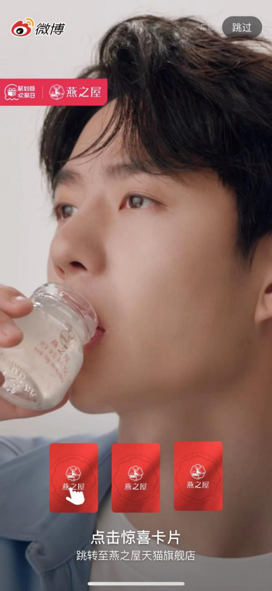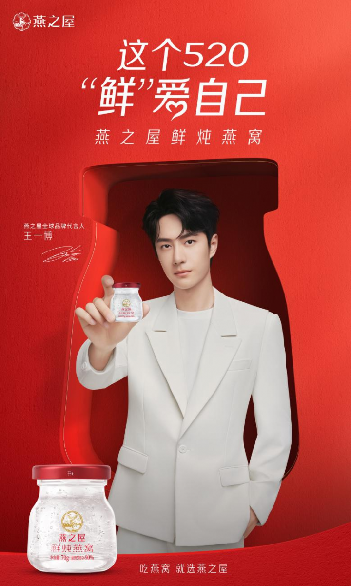 5月20日,燕之屋官宣王一博成為全球品牌代言人,全新品牌代言TVC大片同步釋出,由王一博鮮活開啟燕之屋520“鮮”愛自己計劃。官宣當(dāng)日,燕之屋與王一博于微博發(fā)布官宣博文,同時微博上線官宣開屏廣告,話題#王一博燕之屋全球品牌代言人#沖上微博熱搜。