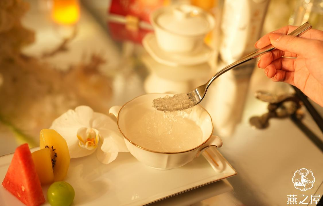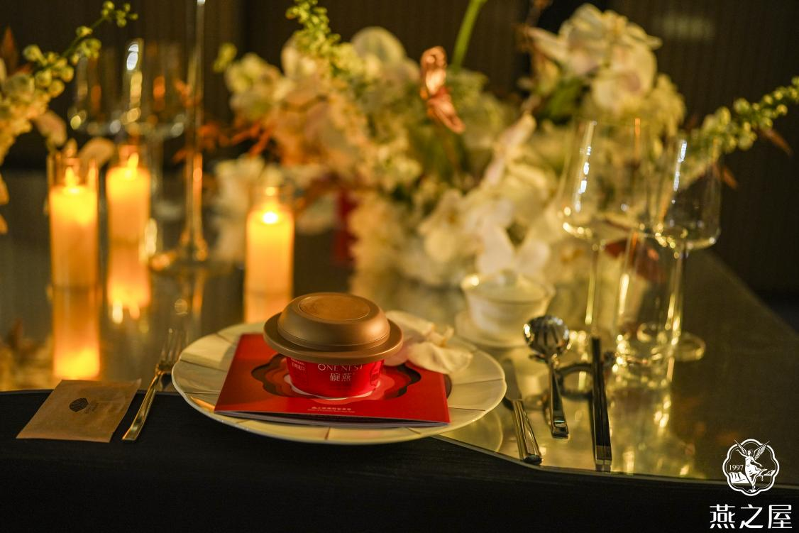 晚宴開場(chǎng),燕之屋以旗下高端燕窩品牌“碗燕”產(chǎn)品碗燕·尊享款(158g)作為宴席前菜,將時(shí)間沉淀的禮物,呈送給每一位珍視生活、追求品質(zhì)的嘉賓。碗燕·尊享款(158g)以古法為基,經(jīng)49道工序淬煉而成,創(chuàng)新121℃高溫萃活工藝,深度激發(fā)燕窩五維營養(yǎng)*(*根據(jù)燕之屋燕窩研究院出具的《碗燕產(chǎn)品五維營養(yǎng)分析報(bào)告》可知,碗燕產(chǎn)品中含有唾液酸、小分子燕窩蛋白、3’-唾液酸乳糖、還原型谷胱甘肽(GSH)、表皮生長因子(EGF)五種營養(yǎng)物質(zhì),即燕窩中的五維營養(yǎng)素)。每碗食用燕窩投料量≥6.7g,燕窩酸含量不低于496mg,真材足料、清爽濃醇。
