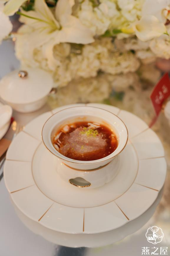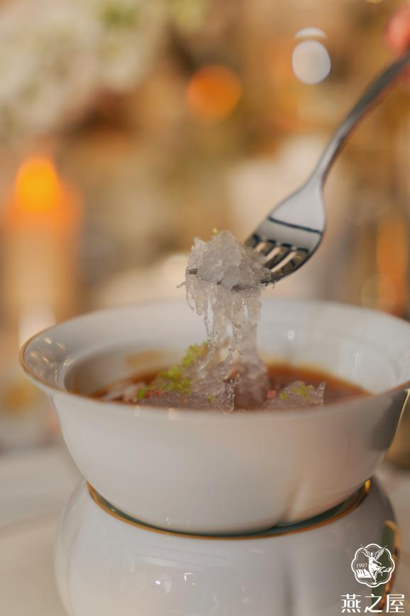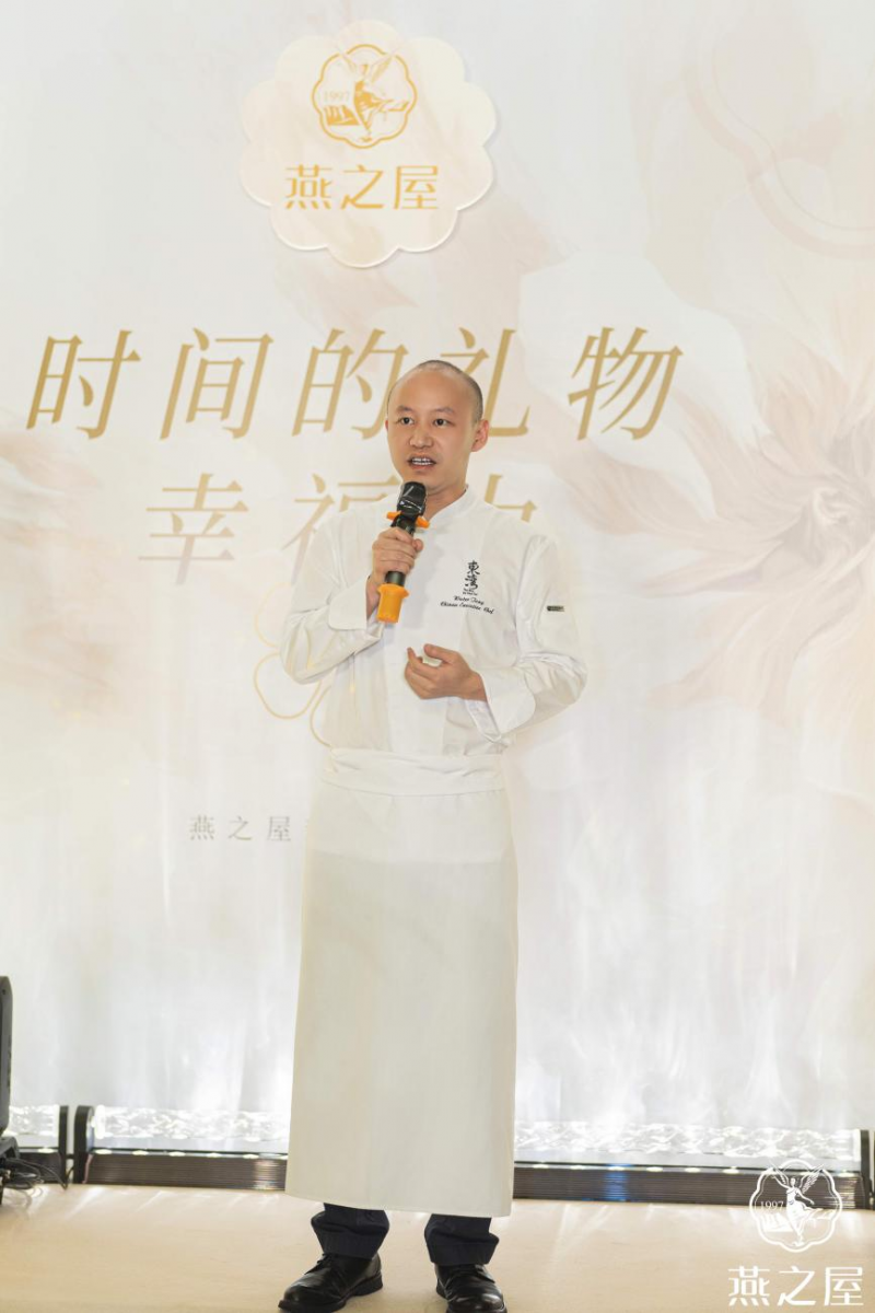 在璀璨的燈光下,由米其林二星主廚黃景輝先生團(tuán)隊(duì)定制的燕窩美饌驚艷登場(chǎng),包括熱菜-鮮拆蟹肉紅燒官燕、主食-鷓鴣茸燕窩羹、甜品-燕窩杏仁豆腐佐時(shí)果,在夏日時(shí)節(jié)為貴賓們送上至臻至味。米其林二星主廚黃景輝團(tuán)隊(duì)代表唐啟水主廚上臺(tái),講解燕窩菜品以及晚宴餐單的靈感來源,他說道:“多年的烹飪生涯中,我一直在探索如何將粵菜與高端食材完美結(jié)合。‘鮮拆蟹肉紅燒官燕’正是我對(duì)這一探索的最新成果。在這道菜中,我特選了燕之屋優(yōu)質(zhì)燕窩和新鮮拆取的蟹肉,通過紅燒的烹飪技法,讓蟹肉與燕窩的味道在慢燉中完美交融。紅燒的醬汁使得整道菜品的口感更加濃郁醇厚,而燕窩的清雅與蟹肉的鮮美則相得益彰,讓人回味無窮”?;洸耍鳛橹袊鴤鹘y(tǒng)四大菜系之一,以其獨(dú)特的口味和精湛的烹飪技藝聞名。燕窩,作為珍貴的滋補(bǔ)食材,更是被譽(yù)為滋補(bǔ)佳品?;洸伺c燕窩相融相襯,呈現(xiàn)別樣的燕窩美饌,不僅讓嘉賓們品味到美食的精致與細(xì)膩,更能感受到中式燕窩的滋養(yǎng)魅力。