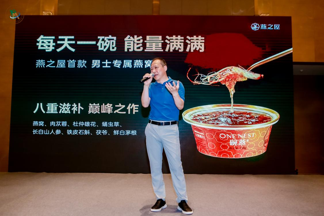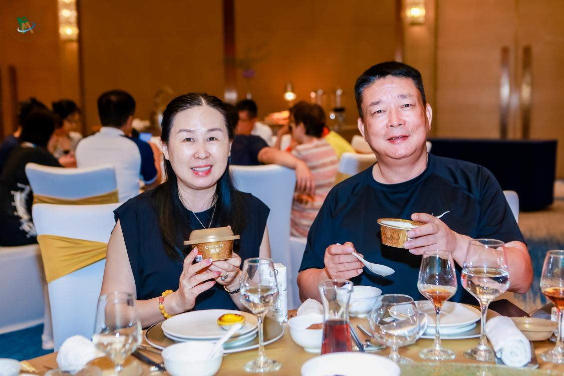 現(xiàn)場,燕之屋創(chuàng)始人、執(zhí)行董事兼董事長黃健為在座賓客介紹燕之屋今夏新品碗燕·總裁款,并邀請眾人共同品鑒。碗燕·總裁款是燕之屋旗下高端燕窩品牌“碗燕”首款男士專屬燕窩,融合燕窩、鐵皮石斛、長白人參、蛹蟲草、茯苓、肉蓯蓉、杜仲雄花、鮮白茅根八大尊貴原料,經(jīng)科學(xué)精控?zé)踔?,充分萃取食材精華,一碗一根長白山人參,參香味濃,口感清潤,帶給宴會賓客舌尖尊享體驗。此外,燕之屋還為宴會提供燕之屋·燕窩肽天然蘇打水,天然純粹,更健康、更滋養(yǎng)。