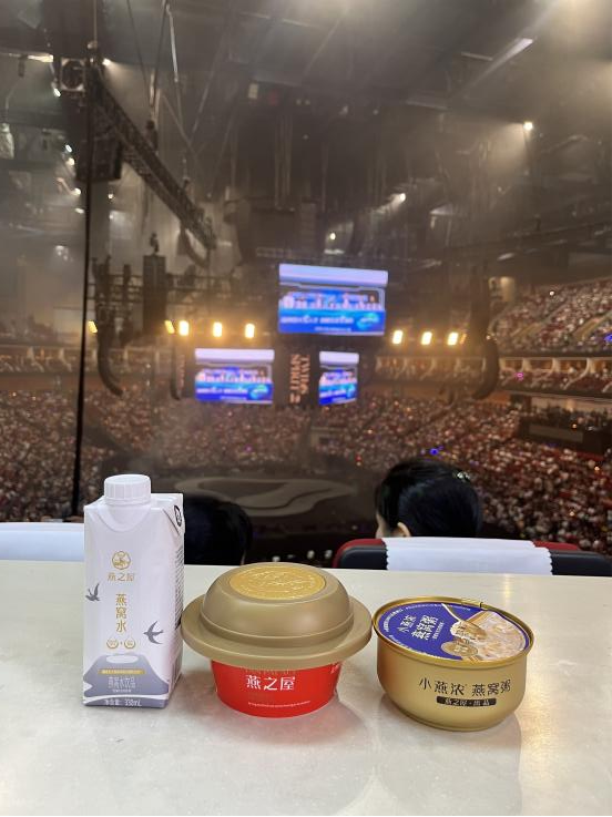 燕之屋專屬貴賓包廂位于場館包廂層觀演區(qū),以獨立豪華私享空間、劇場型座椅、餐飲服務等高級配置,為客戶打造舒適、自由、高品質(zhì)的觀演新體驗。包廂客戶不僅可以享受專屬便捷入場通道、視野廣闊的沉浸式觀演,還可享用燕之屋小燕濃燕窩粥、燕之屋燕窩肽天然蘇打水,升級美好視聽盛宴。燕之屋借助持續(xù)火爆的演出市場,將品牌傳播與演唱會創(chuàng)新結(jié)合,通過邀請觀看演唱會的方式答謝忠實客戶,深受客戶喜愛。