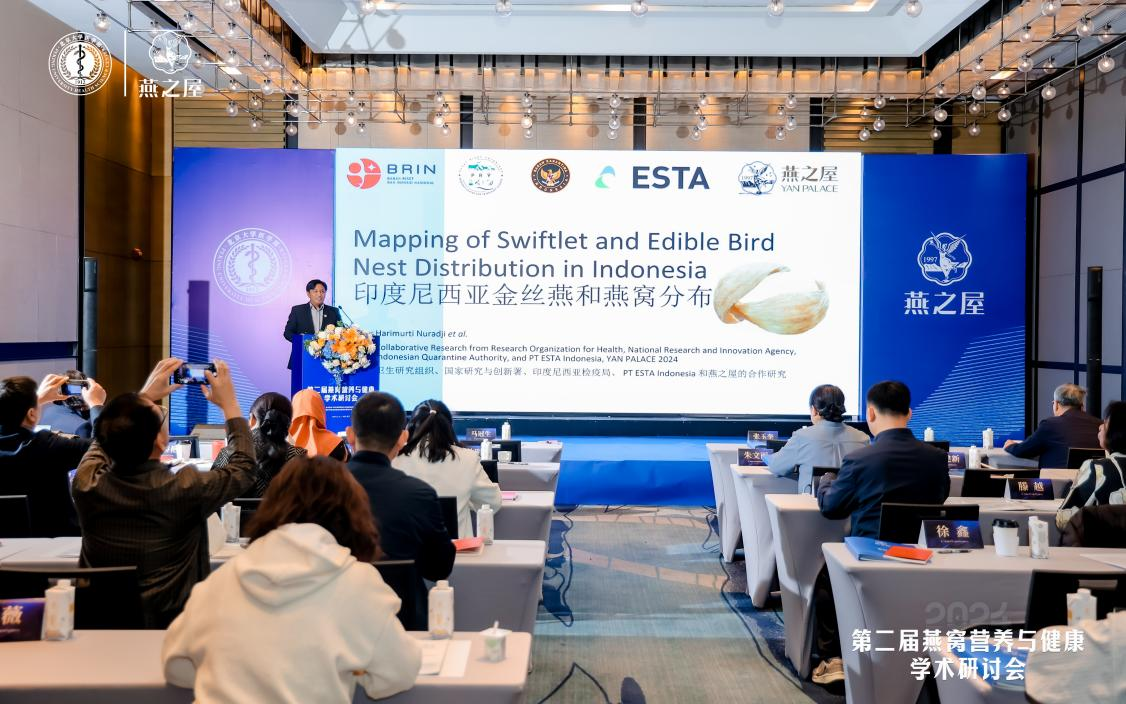 會議還邀請到印尼國家研究與創(chuàng)新署獸醫(yī)科學(xué)中心主任Harimurti博士,他針對燕窩產(chǎn)區(qū)自然生態(tài)發(fā)表研究報告,通過原產(chǎn)地研究人員的深入見解提供了印尼燕窩產(chǎn)區(qū)的科學(xué)資料,豐富了對印尼燕窩產(chǎn)地氣候、食物資源、水資源等的認知。印度尼西亞是全球燕窩主要產(chǎn)地之一,擁有豐富的自然資源和適宜的氣候條件,為金絲燕提供了理想的繁殖和生長環(huán)境。今年,燕之屋發(fā)布《燕之屋印度尼西亞燕窩產(chǎn)區(qū)分級V2.0》,將燕之屋燕窩產(chǎn)區(qū)分為特鉆產(chǎn)區(qū)、鉆石產(chǎn)區(qū)和黃金產(chǎn)區(qū)三個等級,精準溯源進口燕窩,進一步規(guī)范燕窩品質(zhì)。