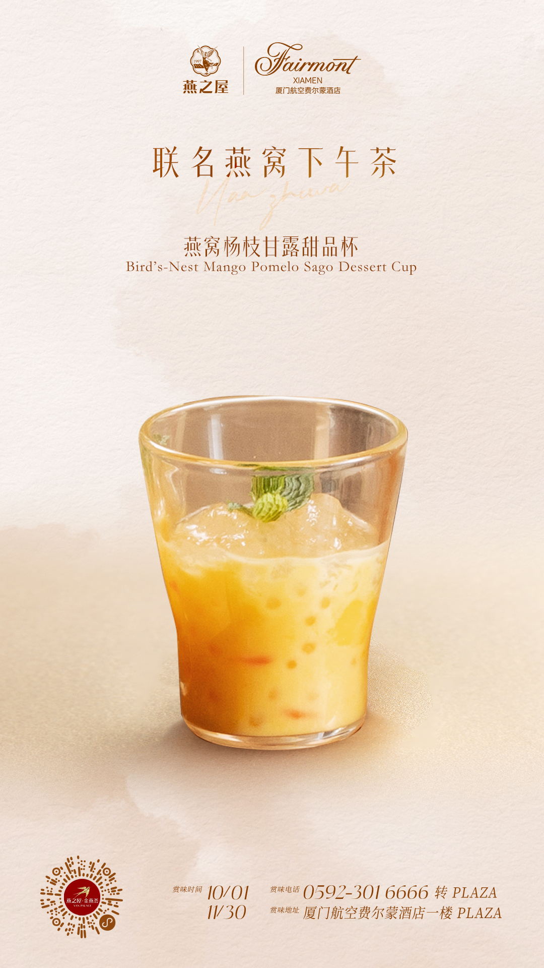 燕之屋聯(lián)袂廈門航空費爾蒙酒店聯(lián)名下午茶上線,于PLAZA臻啟味蕾新程
