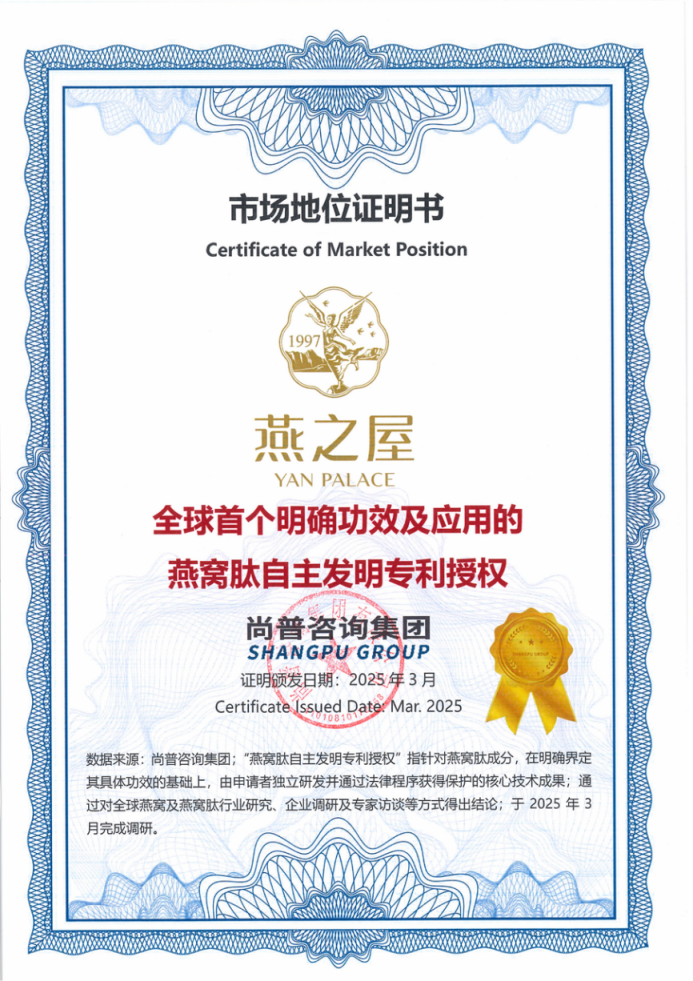 ③燕之屋首個燕窩肽自主研發(fā)工藝及應用發(fā)明專利:一種具有促進細胞修護、高保濕美白功效的燕窩肽制備方法及應用,專利號:ZL 2022 11398048.3