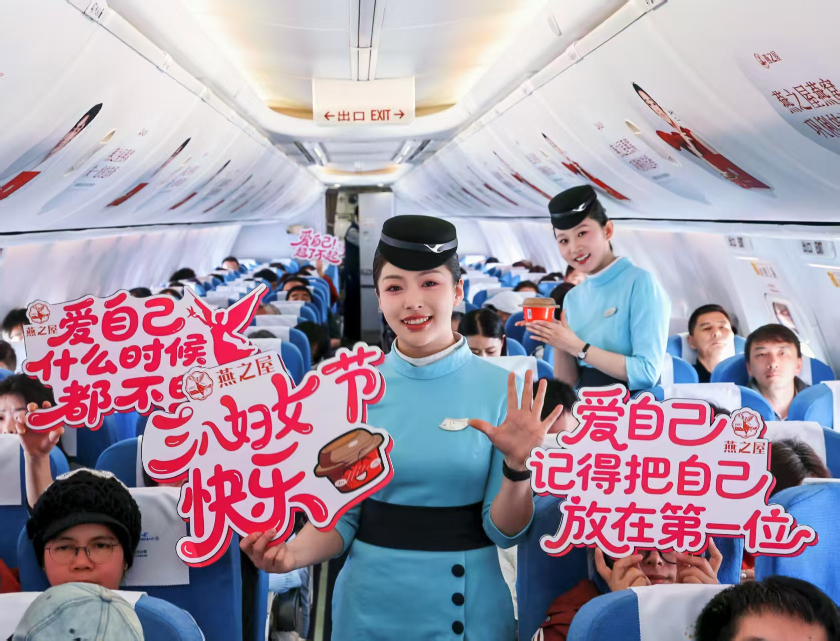 燕之屋與廈門航空打造的婦女節(jié)主題航班由廈門起飛,前往北京。登機前,節(jié)日氣息就已從登機口蔓延開來。燕之屋在登機口設置品牌展區(qū),邀請旅客拍照打卡,并派送燕之屋燕窩肽蘇打水,溫暖開啟活動的首波福利,陪伴旅客愉快登機。